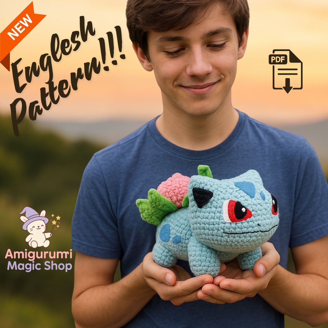 Bulbasaur Crochet Pattern PDF – Amigurumi Plush Toy Inspired by Ivysaur, Cute Pokemon Style DIY Soft Toy, English Download Pattern