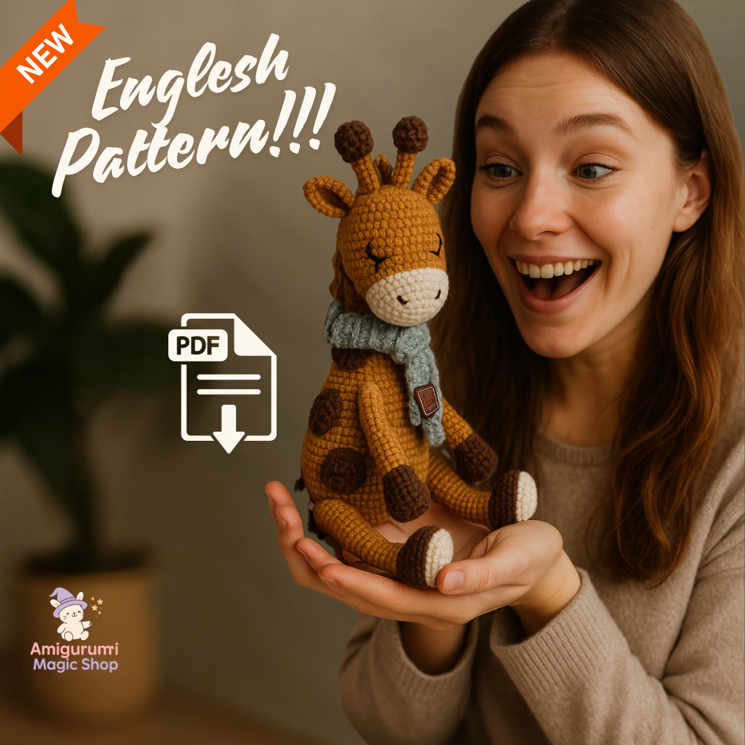 Crochet Giraffe Amigurumi PDF Pattern for Beginners, DIY Stuffed Animal Toy, Easy English Instructions for Handmade Crochet Gift